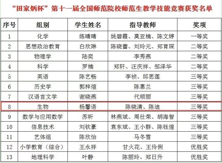 生物科学(师范)专业2023级学生杨馨语在比赛中荣获三等奖。