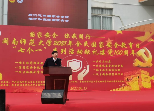 校党委副书记肖庆伟为本次活动致辞,他指出:学校党委高度重视国家安全教育活动,坚持以习近平新时代中国特色社会主义思想为指导,带领师生深入学习领会习近平总书记关于总体国家安全观的重要论述和重要指示精神,准确把握总体国家安全观,着力防范化解校园重大风险,广大师生的国家安全意识得到了显著提高,维护国家安全的责任感、使命感不断增强。同时强调:国家安全、人人有责、人人可为!让我们携起手来,全面践行总体国家安全观,增强忧患意识,为全方位推进高质量发展超越筑牢安全屏障,为庆祝建党100周年营造良好氛围。