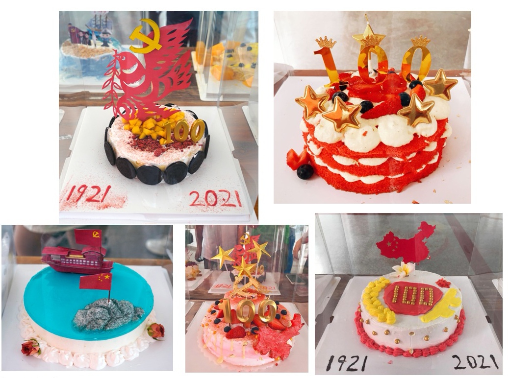 本次活动共分为三个环节,包含蛋糕烘焙作品竞赛、党史知识竞答和食品安全知识宣传展示。在竞赛环节,参赛选手结合专业知识,创造性地运用党史元素把对伟大中国共产党浓浓的深情用甜蜜的方式诠释了出来,烘焙制作出多个蛋糕作品。