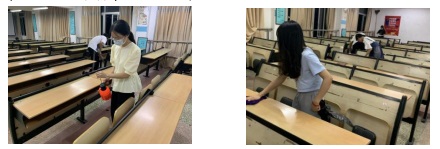党委积极组织学生党员进行教室打扫工作,清洁桌椅,消毒杀菌等工作,学生党员们耐心认真,仔细工作,不让病毒和细菌乘虚而入,为同学们线下复课做好准备,为同学们的健康筑起一道防护墙。