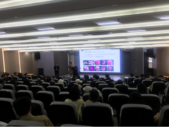 学术报告就中国野牡丹科植物资源调查、系统学、基因组学、传粉生物学、新品种选育、繁殖技术和保育策略等方面的阶段性研究成果,对我国野牡丹科资源、观赏价值、关键种质资源的开发及濒危种保护进行了全面讲解。彭东辉教授透过实例与师生分享成果,丰富的专业知识与从业经验,给在场的师生留下了深刻的印象,现场气氛十分活跃。