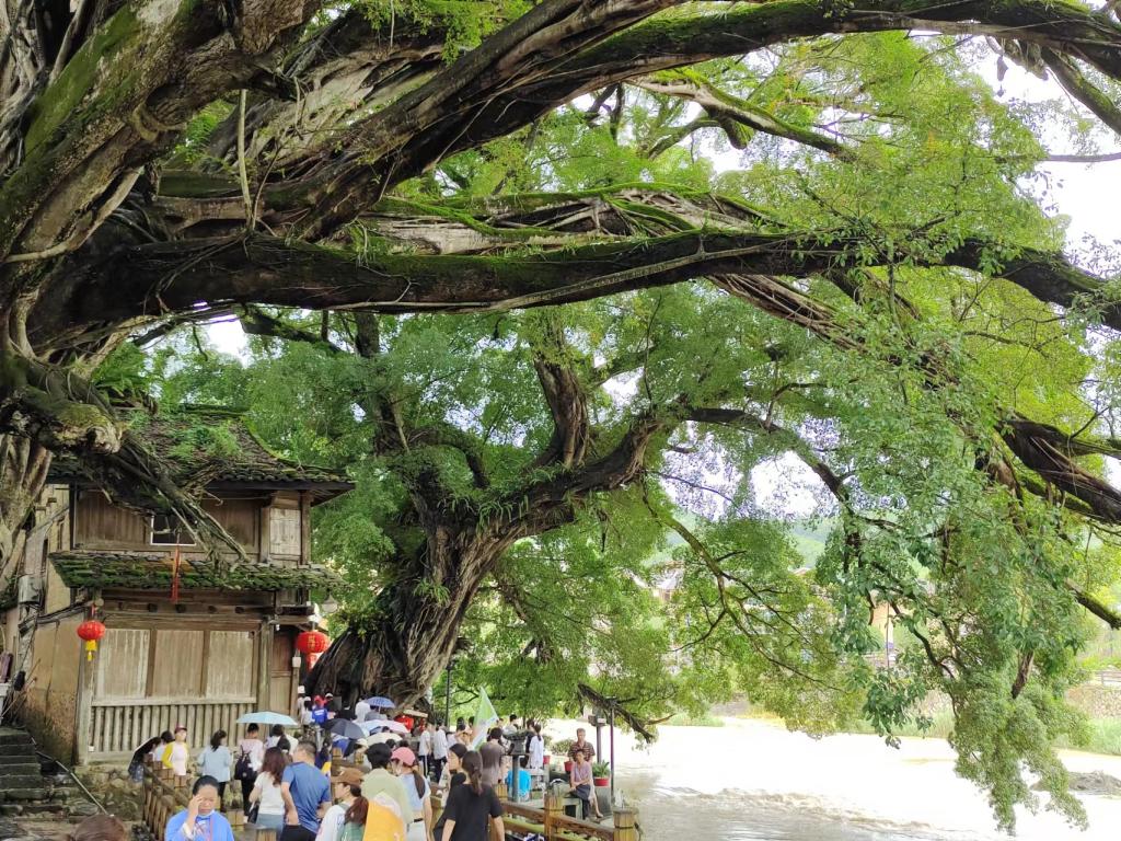 本社会实践团队先到达第一站:云水谣,深入云水谣景区,了解关于云水谣地区的园林建筑特色与环境特点。云水谣,属于世界文化遗产“福建土楼”的一个景区,那里山川秀美、人文丰富,云水谣古栈道,游览省内最高最大最为集中的千年古榕树群,溪岸边13棵百年千年老榕,榕树下是一条被踩磨得非常光滑的鹅卵石古道伸向远方,沧桑的历史在这里留下了深深的印迹,蜿蜒的溪水从古道边流过。村中幽长古道、百年老榕、神奇土楼,还有那灵山碧水,无不给人以超然的感觉。