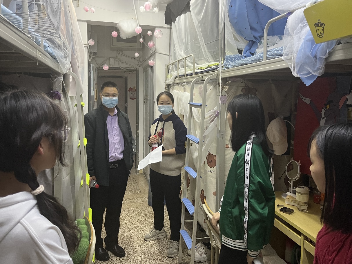 辅导员和部分班主任深入学生宿舍,与学生谈心谈话,详细关心学生学习生活状况的同时,耐心给学生们解读最新疫情防控政策,引导广大同学紧跟党的战略决策、遵守学校各项规章制度、确实加强自身安全防护。