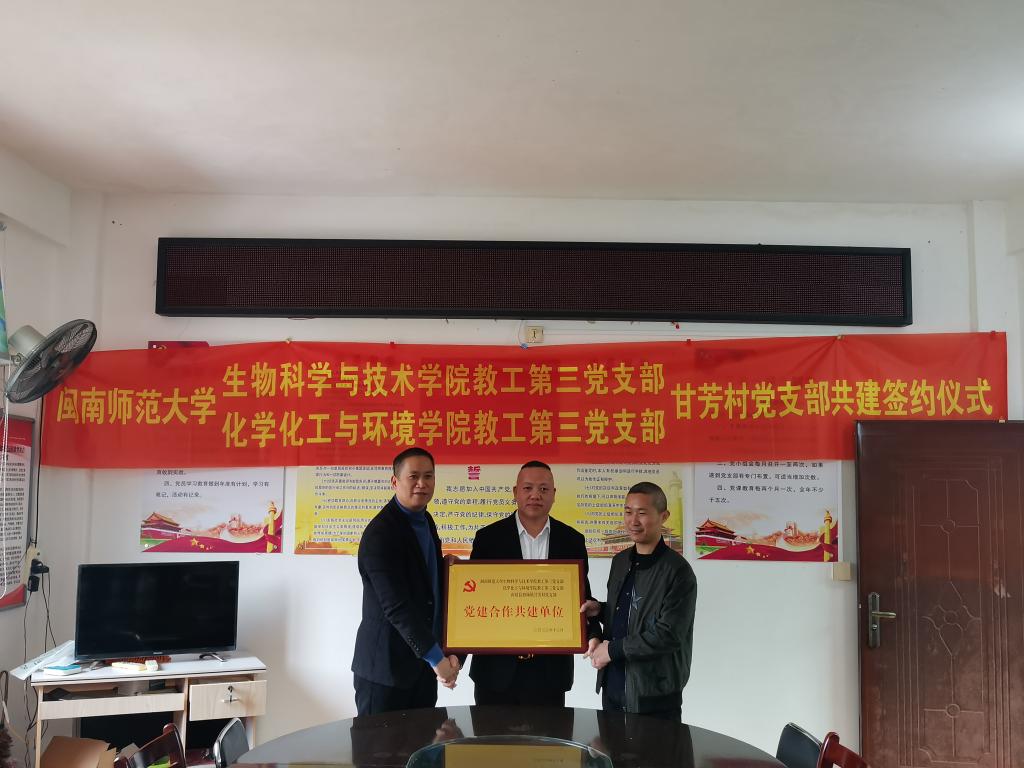 党委副书记陈文婷、南靖县科协主席黄晓东、船场镇组织委员戴天真、甘芳村党支部书记吴东初、化工学院教工第三党支部书记黄明强及院教工第三党支部书记李明峰就三方基本情况、甘芳村乡村振兴的诉求、实践路径以及创新“党建引领、务实合作、资源共享、合作共赢”的基层党建工作模式等方面进行深入的探讨和交流。会后,进行党支部共建签约仪式,今后将在甘芳村乡村振兴帮扶指导、bl动漫