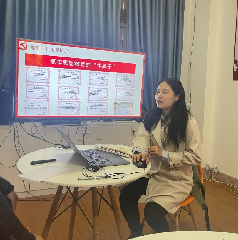 会上,党支部书记唐雪颖首先汇报了2021年度党支部整改措施的落实情况,指出党支部在思想教育、党员管理、党建与业务融合等方面取得了显著成效,如顺利通过全省党建样板支部验收,获批学校2022-2024学年支部立项活动和“支部好案例”三等奖等,同时也存在一些不足,如工作计划和目标制定不够具体、任务分配不够合理、党员教育和管理不够到位等,并提出了相应的整改措施。