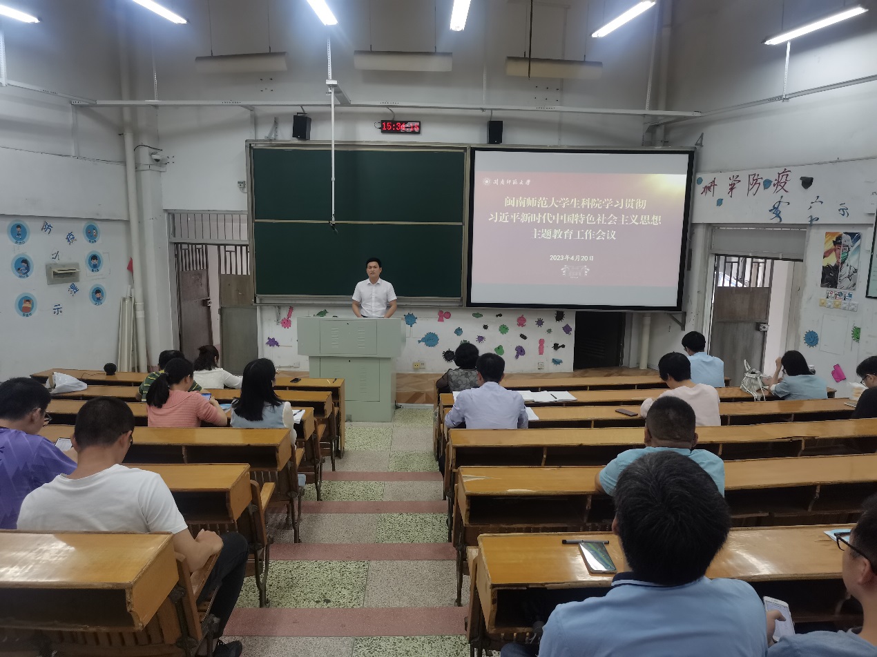 于达南306召开学习贯彻习近平新时代中国特色社会主义思想主题教育工作动员会,学院全体教职工参加,会议由院长陆銮眉主持。