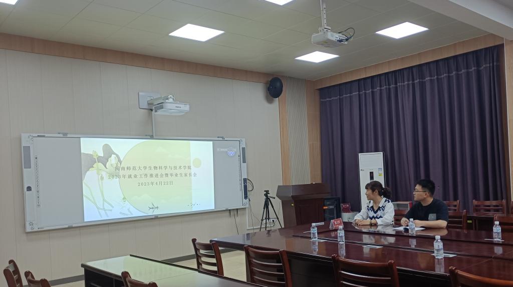在达理楼南一楼报告厅召开2023届毕业生就业工作推进会暨23届毕业生家长会。会议通过云端会议的形式开展,学院党委副书记陈文婷、本科毕业生辅导员张学强参加本次会议。