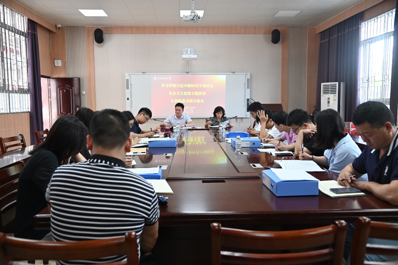 于达南105举行学习贯彻习近平新时代中国特色社会主义思想主题教育读书班开班式暨第一次集中学习,学院党政领导班子、党委委员、各党支部书记、学生党员代表参加会议,会议由党委书记连恩德主持。