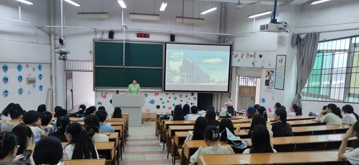 在达理楼南306教室召开2023届毕业生离校教育服务主题班会。会议通过线上、线下的形式同步开展,学院党委副书记陈文婷、本科毕业生辅导员张学强参加本次会议。
