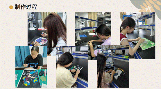 看着制作完的肌理画,同学们纷纷表示感到成就感满满,表示今后也会愿意多尝试其他不同的手工。