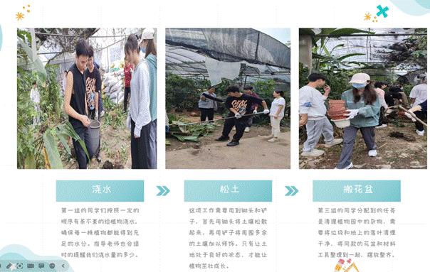 活动期间,同学们有序分工,完成了宿舍大扫除、实验室及植物园劳动,打造干净整洁的居住学习环境,体验种植过程,还通过亲手制作菠萝干,体验到作为“食品人”的乐趣,感受到劳动所带来的成就感。