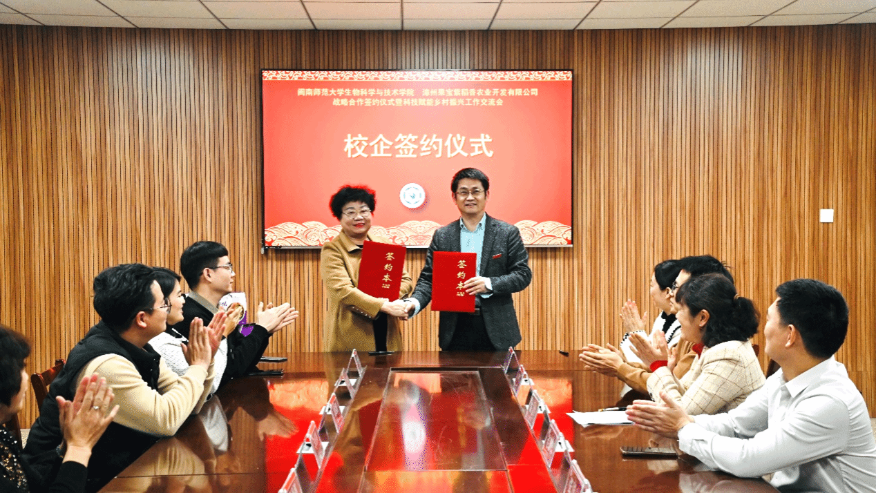 与漳州果宝紫稻香农业开发有限公司的战略合作正式启航,战略合作协议的签署,旨在充分发挥高校学科专业优势和地方企业资源禀赋优势,持续推进校地企业合作,助推漳州地方经济社会发展和企业行业振兴发展。