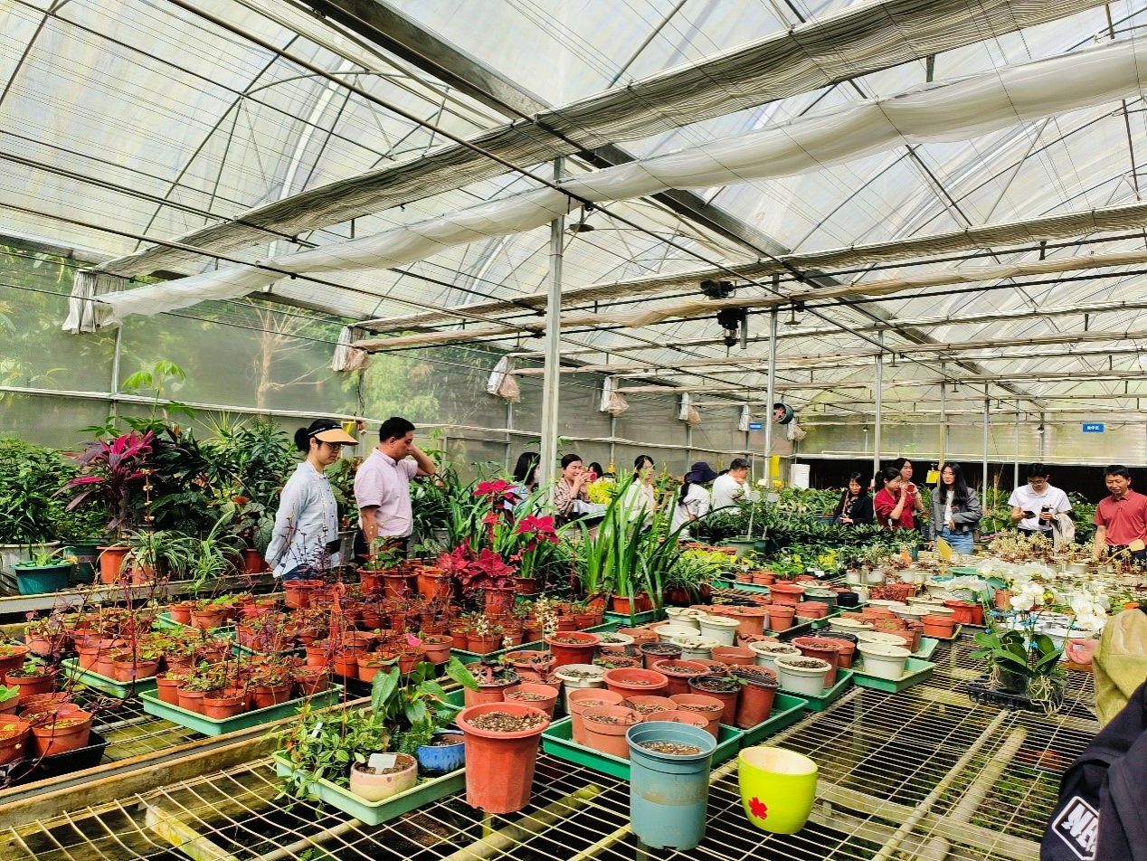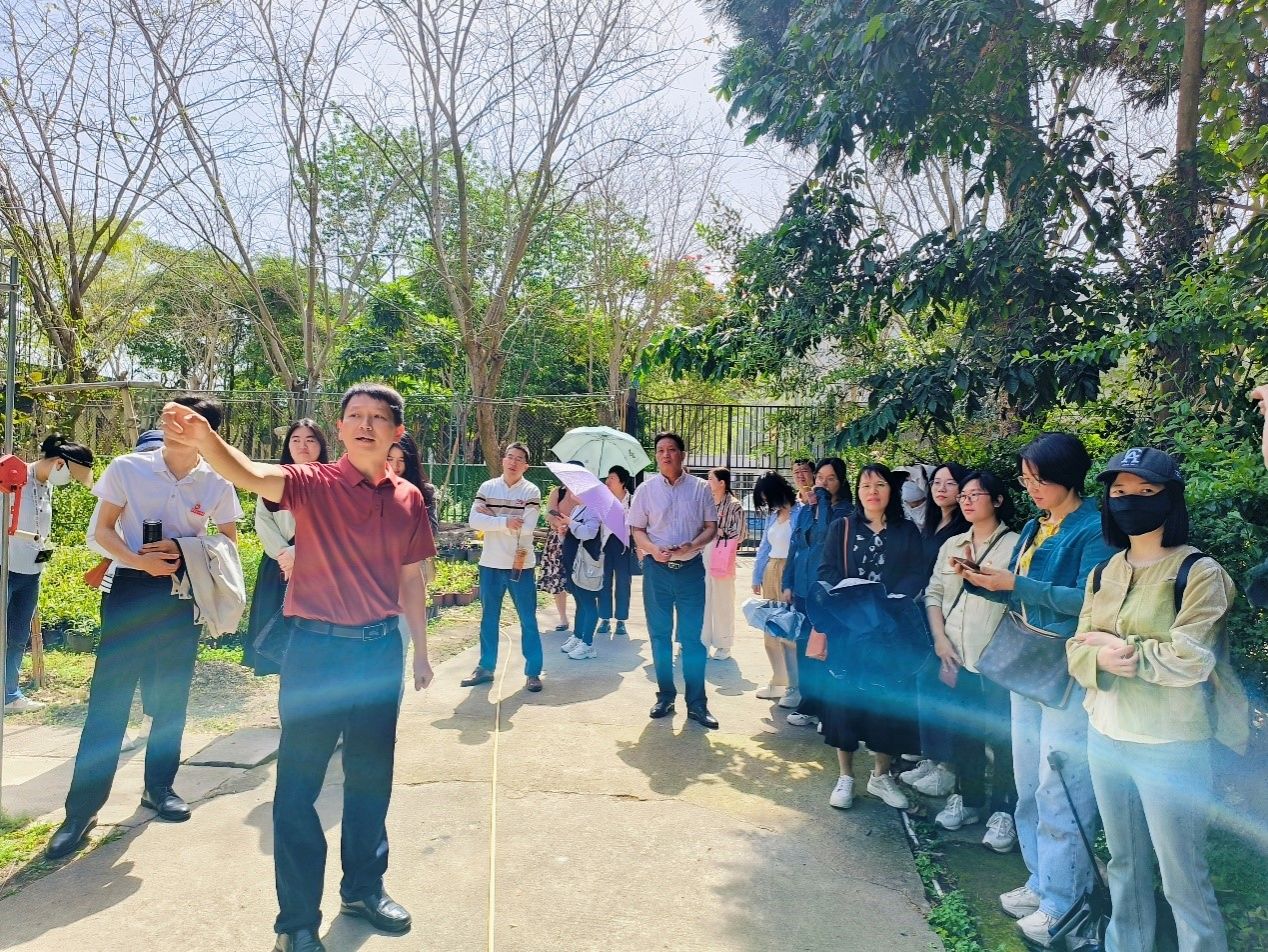 张泽宏、朱旸、陈巧玲等老师向一中的教师们详细介绍了园区的植物种类、生态布局以及在科研、科普、劳动教育等方面的重要作用。一中的教师们饶有兴致地观察各类珍稀植物,不时就植物特性、生态环境等问题与bl动漫