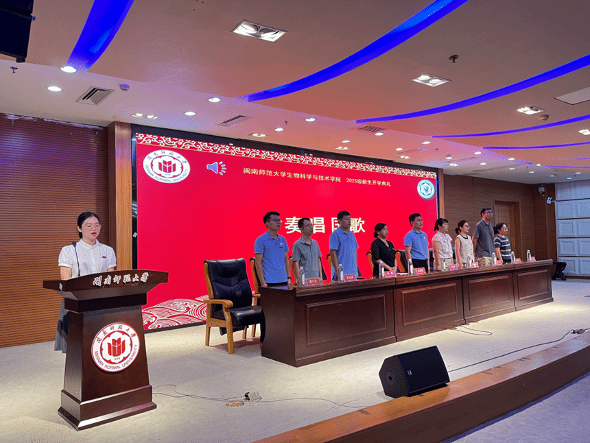 的发展历程、学科特色与师生风采,让新生们对即将开启的大学生活充满期待。当激昂的国歌旋律响起,全场师生即刻起身肃立,嘹亮的歌声回荡在报告厅的每一个角落,也拉开了典礼的帷幕。