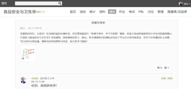 薛山老师的《食品安全与卫生学》混合教学自2019年实施以来,从教学设计、实施、教学效果、教学经验方面进行了探究。在这次抗疫之战中,该课程提前进行了充分的更新与维护,不仅以更完善、更专业的“身姿”继续向食品专业开设线上线下混合教学,也不断优化教学资源、扬长避短,面向全国高校开放线上资源,积极响应并落实教育部“停课不停学、不停教”的号召。
