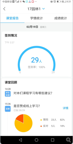 据统计100%学生完成了各任务点,81%学生完成作业;同时,在上课时师生互动交流良好,提高学生学习兴趣。