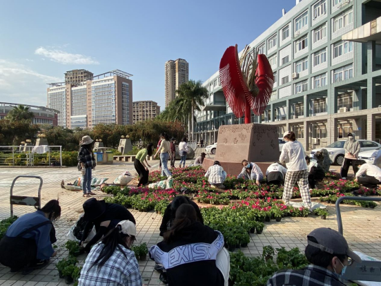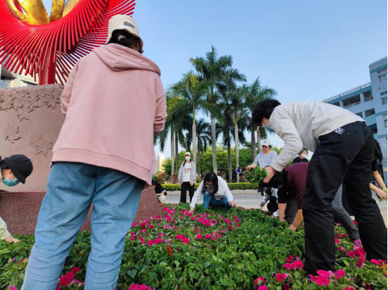 为了更好地美化校园环境,结合专业特色教育提高学生的劳动实践能力,4月7日下午,2019级风景园林3班同学负责凤凰花坛改造活动,学院陆銮眉院长和风景园林专业教师进行了现场指导。