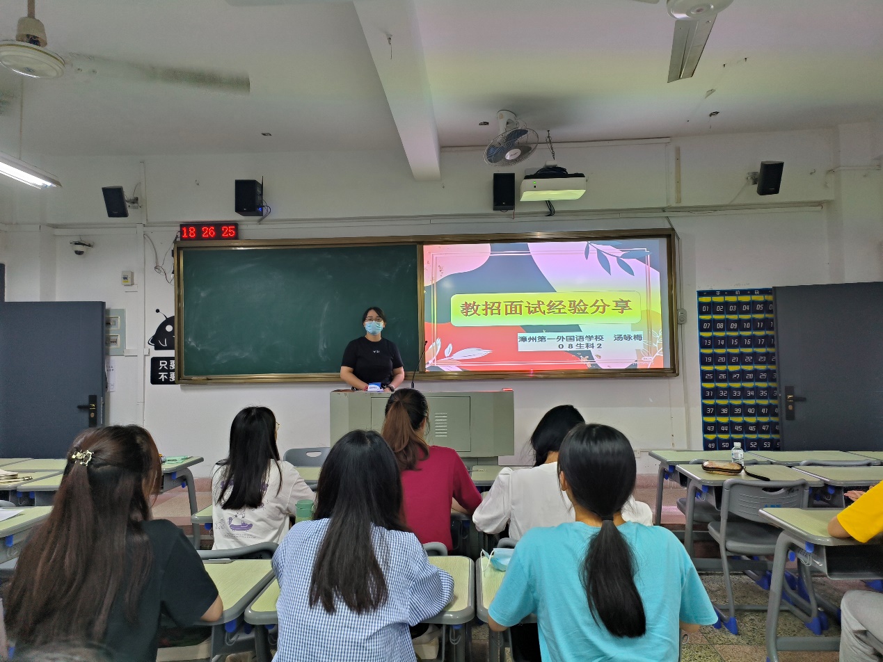 生物科学(师范)专业校友现漳州市第一外国语学校(原漳州八中)汤咏梅老师做“教招面试分享及片段教学技巧与案例分析”专题讲座。