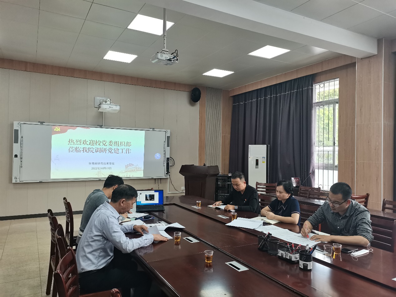 ,调研指导学院党建工作。调研座谈会在达南105召开,学院党政负责人、党委组织员、办公室主任参加调研,校党委组织部干部科科长何建顺,物信学院党委组织员郑海山陪同调研。