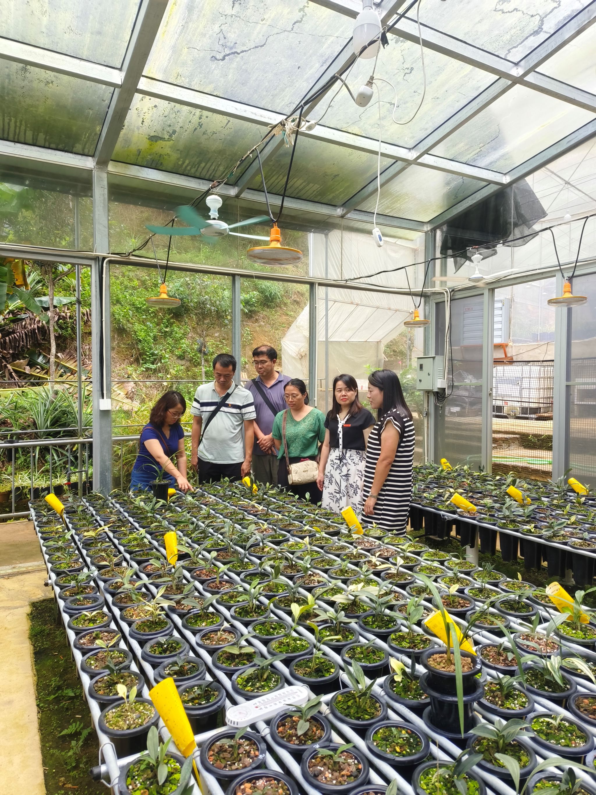 领导和老师参观兰花种植大棚、中草药种植园区和产品展厅等。