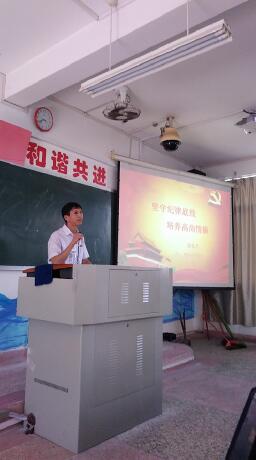 党委书记蒲俊之在博中403为全体师生党员上了题为“坚守纪律底线 培养高尚情操”的党课。潘裕添院长作为党外人士代表列席了党课。