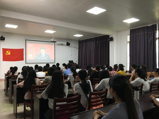 党委组织师生党员、主要学生干部于达南一楼学术报告厅通过直播观看了中国共产党第十九次人民代表大会的开幕会。
