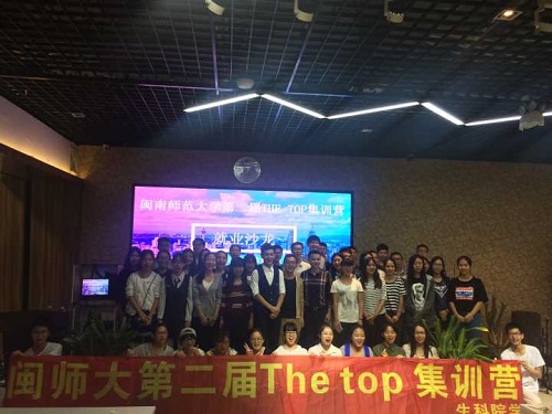 学生会就业服务中心举办的The top 集训营就业沙龙环节在漳州市商业城悦农庄顺利举行。本次活动邀请到了具有丰富创业就业经验的林少斌,林煌,孙海周,吴海燕,伍兆豪等5位嘉宾前来为学员们讲解有关就业创业的问题。