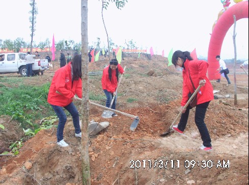 3月11日早上七点我系党员与志愿者在校门口集合后便乘车前往石亭镇森林公园,八点我们与有关工作人员以及人民子弟兵一起开始我们的植树活动。在那荒芜的土地上,我们纷纷行动起来,翻土、挖坑、种树、浇水,一个上午下来,我们也已筋疲力尽,然而我们却乐在其中,收获在其中。作为一名大学生党员,我们拥有着年轻,拥有着朝气,我们不仅要有积极的思想,还要去积极的行动。当时一个正在植树一个党员是这样理解植树的:“或许这只是我们的举手之劳,但却会使这个世界更加美好,而且在这个过程中我们认识且真切地体会到了一个生命的意义。