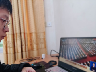 青年团员一起学习全国两会所传达的新思想。
