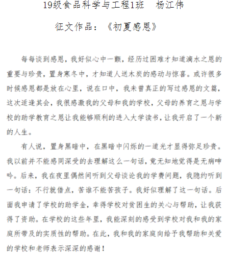 为进一步宣传国家学生资助政策及实施成效,激励广大受助学生奋发自强、立志成才、感恩奉献,不断推进精准资助,提升资助育人效果,bl动漫 团季开展“筑梦新时代,奋进新征程”诚信感恩教育活动。
