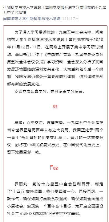 教工第四党支部开展学习贯彻党的十九届五中全会精神(2020.11.17)