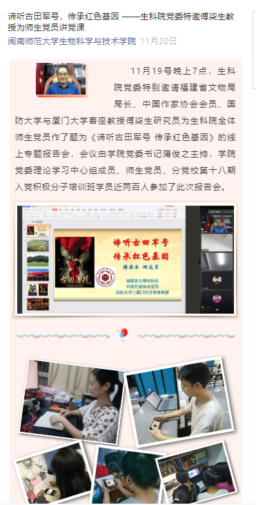 党委特邀傅柒生教授为师生党员讲党课(2020.11.20)