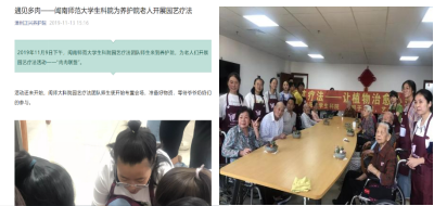 园艺专业学生培养目标是以服务闽南、乃至海西的现代园艺生产,辐射全国为宗旨,以园艺学、生物学为主要支撑学科,培养熟悉园艺全产业链生产、经营和管理的高素质复合型和创新型人才。学生学习的模块课程有:观赏园艺、果蔬茶和智慧园艺,在专业基础和核心课程基础上开设休闲农业与乡村旅游、压花艺术、无土栽培、园艺康养、物联网感知与应用、等与都市休闲园艺和智慧园艺相关的课程。培养过程中,努力用“三个课堂”提高教学质量,重视教学过程中“学生主体”的作用,鼓励学生参加校内外相关的比赛,如中国世北京界园艺博览会室内展品比赛、中国花卉博览会压花比赛、大学生创新创业大赛、福建省插花比赛、组合栽培大赛等,成绩优异。且与课程紧密结合,通过课程实习、综合实习等,带领学生“走出去”到企业进行参观实践,让学生对园艺专业有更深刻的了解。为培养学生实践与社会服务能力的培养,经常组织学生开展大学生暑期社会实践、养老院与特殊学校的园艺疗法服务等,让他们学有所用,为社会服务贡献绵薄之力。近三年,学生考研升学率较高,升学院校包括华中农业大学、北京师范大学、南京农业大学、华南农业大学、福建农林大学等多所高校。毕业生历年就业率均高于 90%,就业前景乐观。