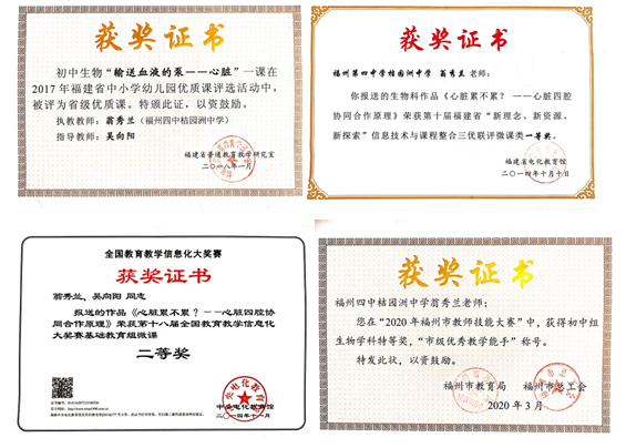 学姐目前就职于福州四中桔园洲中学,任初二班主任。在职期间,在教学方面多次获得福州市优秀教师荣誉称号,多次在省级公开课上表现优异,名列前茅。更曾荣获全国优秀微课二等奖、福建省优质课、福建省优秀微课一等奖和教师技能赛特等奖等诸多奖项。